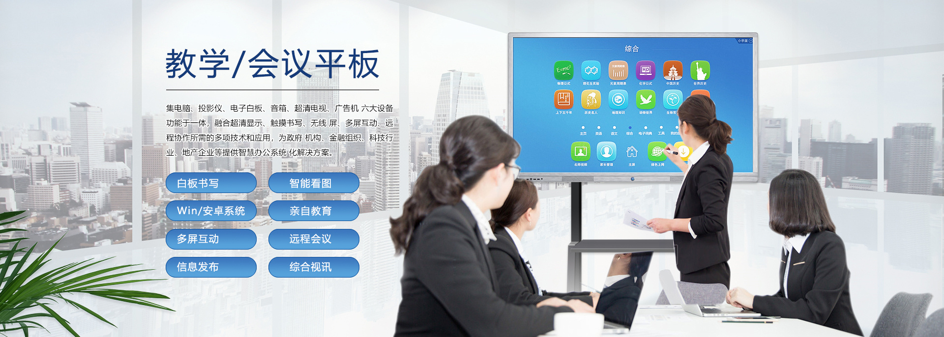 查看詳情在信息急劇膨脹、互聯(lián)網(wǎng)快速發(fā)展、競(jìng)爭(zhēng)愈加激烈的商業(yè)社會(huì),“開(kāi)會(huì)”已經(jīng)成了職場(chǎng)人士最為熟悉的一種工作方式。尤其是企業(yè),工作中需要通過(guò)許多大大小小的會(huì)議交流信息、解決問(wèn)題和作出決策。會(huì)議的最終目的是提高企業(yè)運(yùn)作的效率,但是許多的企業(yè)卻往往陷入了“低效率”的泥潭。場(chǎng)景一:在與客戶的洽談會(huì)上!準(zhǔn)備好的PPT竟發(fā)現(xiàn)打不開(kāi)了!場(chǎng)景二:開(kāi)會(huì)啦!與會(huì)人員陸續(xù)進(jìn)入會(huì)議室,人手一疊厚厚的資料,一時(shí)間,整潔干凈的會(huì)議室一下子沸騰起來(lái),會(huì)議討論聲,不停翻找資料的刷刷聲好不“熱鬧”!場(chǎng)景三:炎炎夏日,在小“黑”層里,投影機(jī)發(fā)出陣陣熱浪,讓周圍本就燥熱的人更加的心浮氣躁,久久不能平靜下來(lái),更何從談起會(huì)議質(zhì)量!場(chǎng)景四:遠(yuǎn)程......